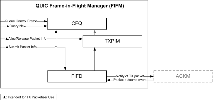 . The FIFD takes care of submitting the packet to the ACK Manager and provides its own callback implementation. It also takes care of informing the CFQ that any CFQ items which were added viaossl_quic_txpim_pkt_add_cfq_item()